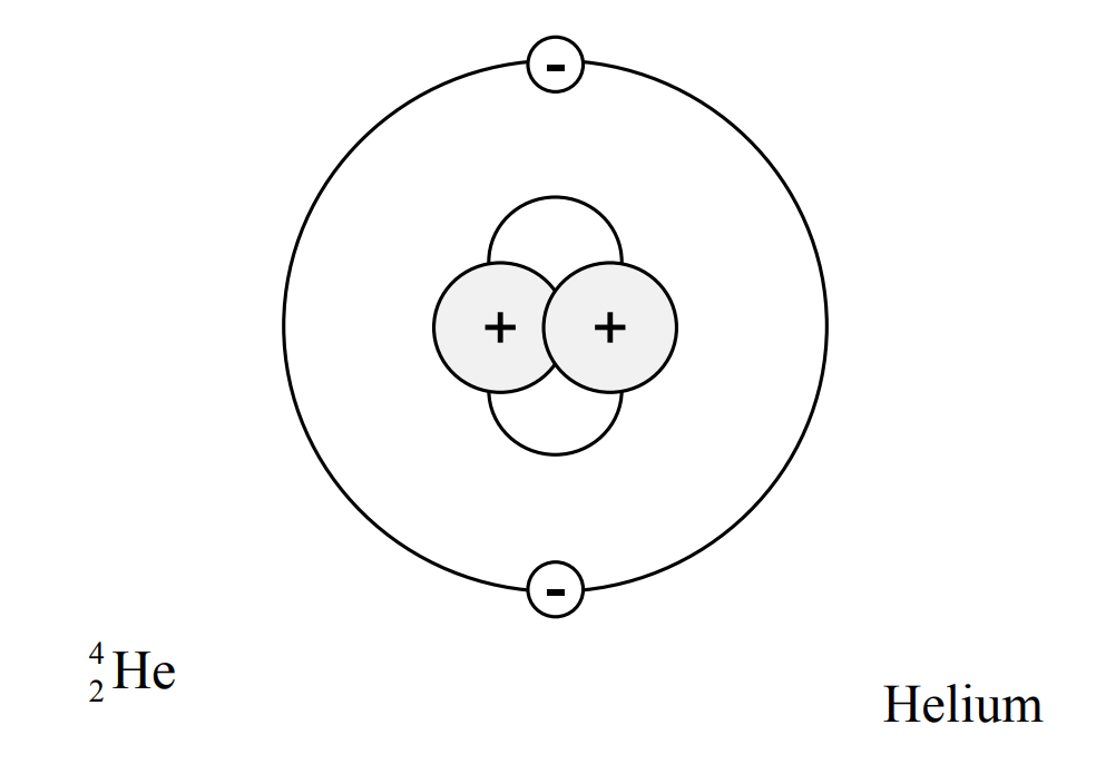 The next element on the periodic table, with an atomic number of 2, is Helium. Helium has two protons and two neutrons in its nucleus and two electrons to accompany them. See the figure below.